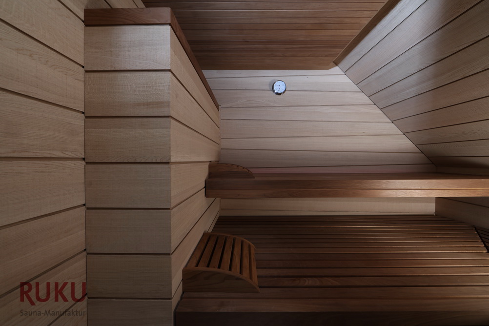 Le saune RUKU-Thermium si basano sul sistema di pannelli a raggi infrarossi. Paragonate ad una stufa tradizionale questo sistema permette una sudorazione in un ambiente più piacevole con una migliore ossigenazione. In aggiunta a tutte le cabine (sauna tradizionale/finlandese o a infrarossi) RUKU-Meditherm permette la trasformazione della stessa in un bagno a vapore o aromatico.